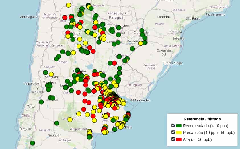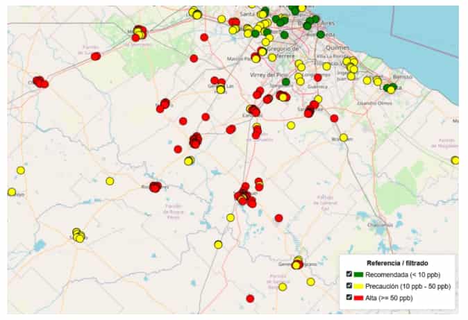 El Instituto Tecnológico de Buenos Aires (ITBA) presentó una nueva versión de su Mapa de Arsénico, una herramienta que permite monitorear en tiempo real la presencia de este compuesto en el agua de distintos puntos del país. La actualización confirmó que varias localidades de la provincia de Buenos Aires registran niveles superiores a los recomendados por la Organización Mundial de la Salud (OMS).