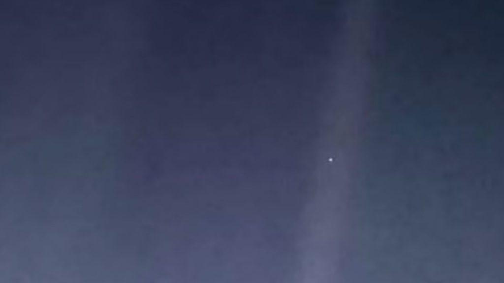 El 14 de febrero de 1990, a las 04:48 GMT, la sonda orientó su cámara hacia la Tierra, situada a unos 6.055 millones de kilómetros de distancia, siguiendo la propuesta de Sagan. La imagen obtenida, parte del llamado “Retrato de familia” del sistema solar, mostró al planeta como un diminuto punto azul suspendido en el vacío y atravesado por franjas de luz solar reflejadas en la óptica del instrumento.