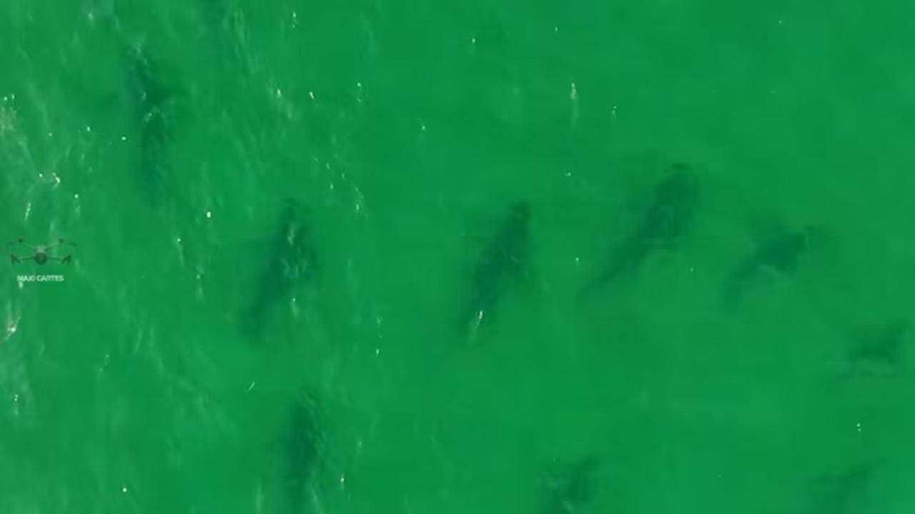 «Más de 100 tiburones Bacota (Carcharhinus brachyurus) congregados en nuestras costas. Estamos ante un fenómeno de la naturaleza raramente documentado con esta magnitud en el mundo«, posteó en sus redes el naturalista y piloto de Dron Maximiliano Cartés Salas.