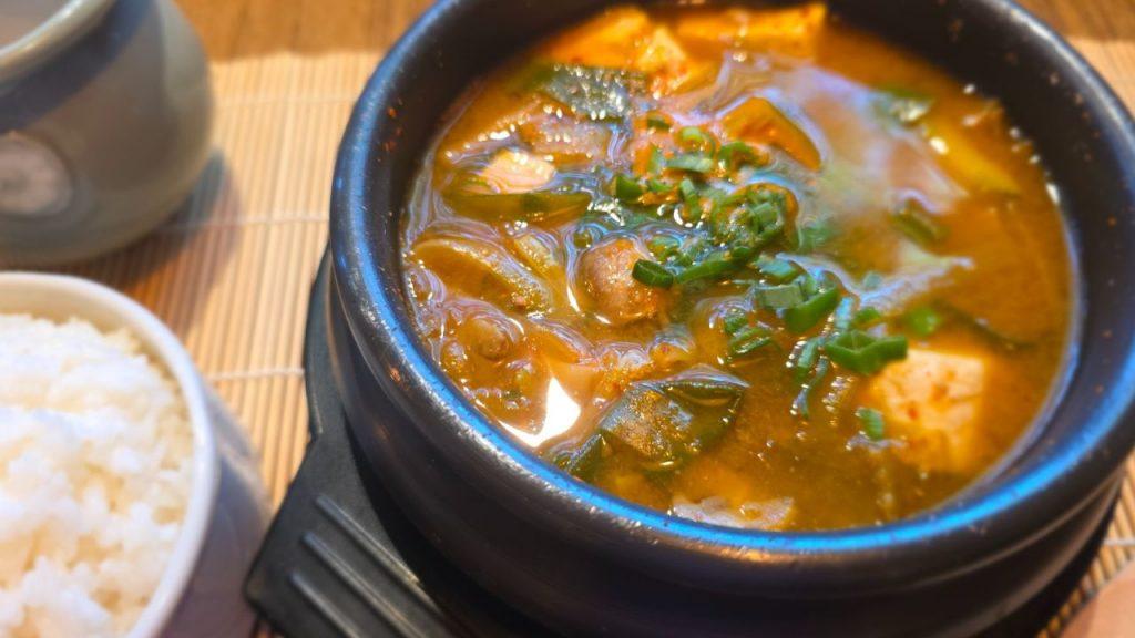 En la gastronomía coreana, los diferentes tipos de sopas toma un rol fundamental. El motivo principal es que en Corea no había abundancia de comidas, tenía que acudir al método de multiplicar diluyendo los ingredientes en agua, hervir y condimentar. Y a la creatividad gastronómica.